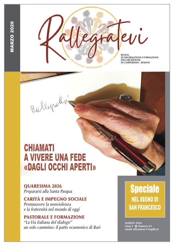 RALLEGRATEVI LA NUOVA RIVISTA DI FORMAZIONE E CULTURA DELL’ARCIDIOCESI DI CAMPOBASSO-BOJANO Leggi » 25 Marzo 2026